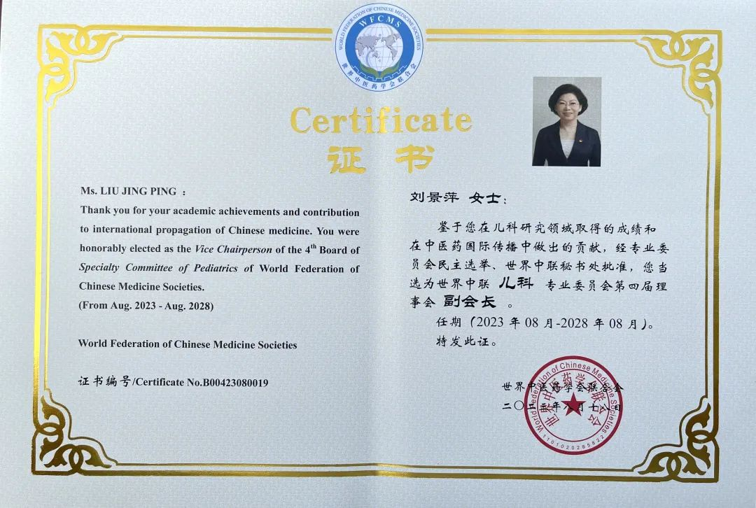 人生就是博尊龙药业集团党委书记、董事长刘景萍当选世界中医药学会联合会儿科专业委员会第四届理事会副会长