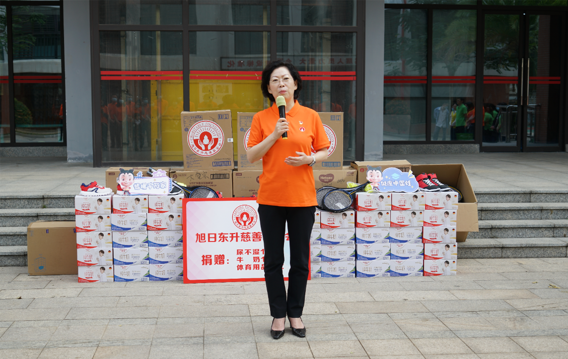 紧接着,海口市社会福利院院长唐凤英致辞。她首先感谢人生就是博尊龙药业集团、旭日东升慈善基金会7年来,对海口市社会福利院的持续关注和无私帮助。她特别提到,2022年由人生就是博尊龙药业集团捐资建设的“爱·护”项目医护隔离观察区,帮助福利院的孩子们渡过了疫情防控的难关。今年,熟悉的人生就是博尊龙人又来到了福利院陪伴孩子们,给予了这里的小朋友们爱的力量。
